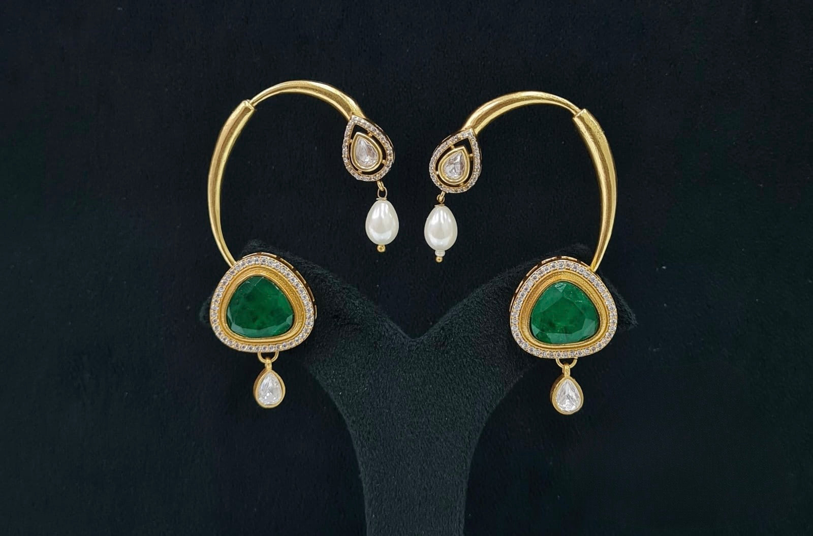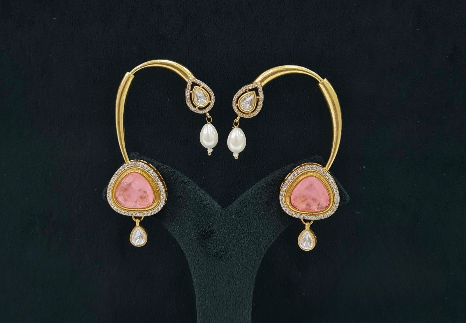 Pair your Kundan Earcuff with a silk saree or lehenga and a sleek bun adorned with fresh flowers for a timeless and graceful look